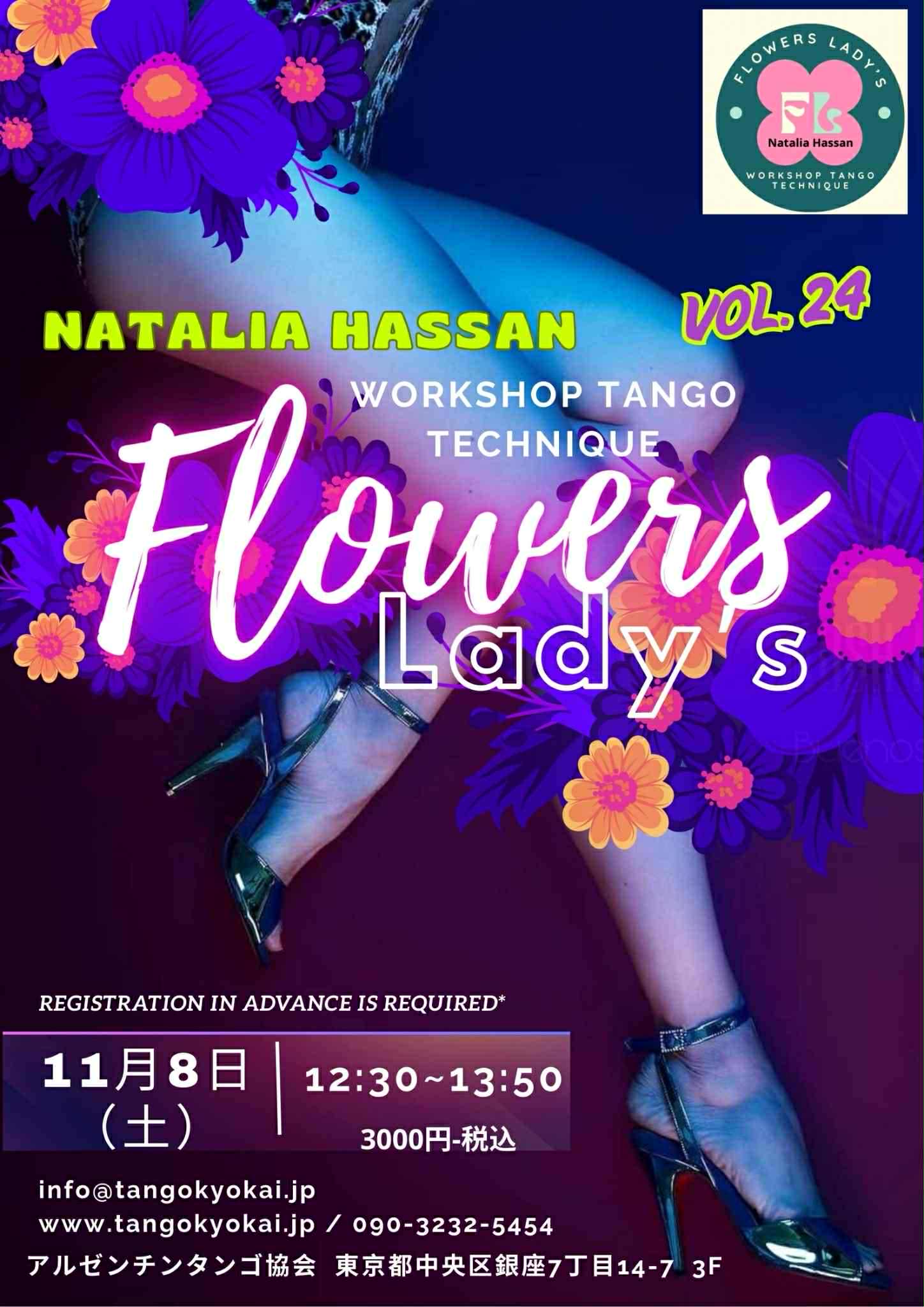 月1回開催のナタリアによるフラワーレディースクラス以外全てのグループレッスンやミロンガは予約制ではありませんので、